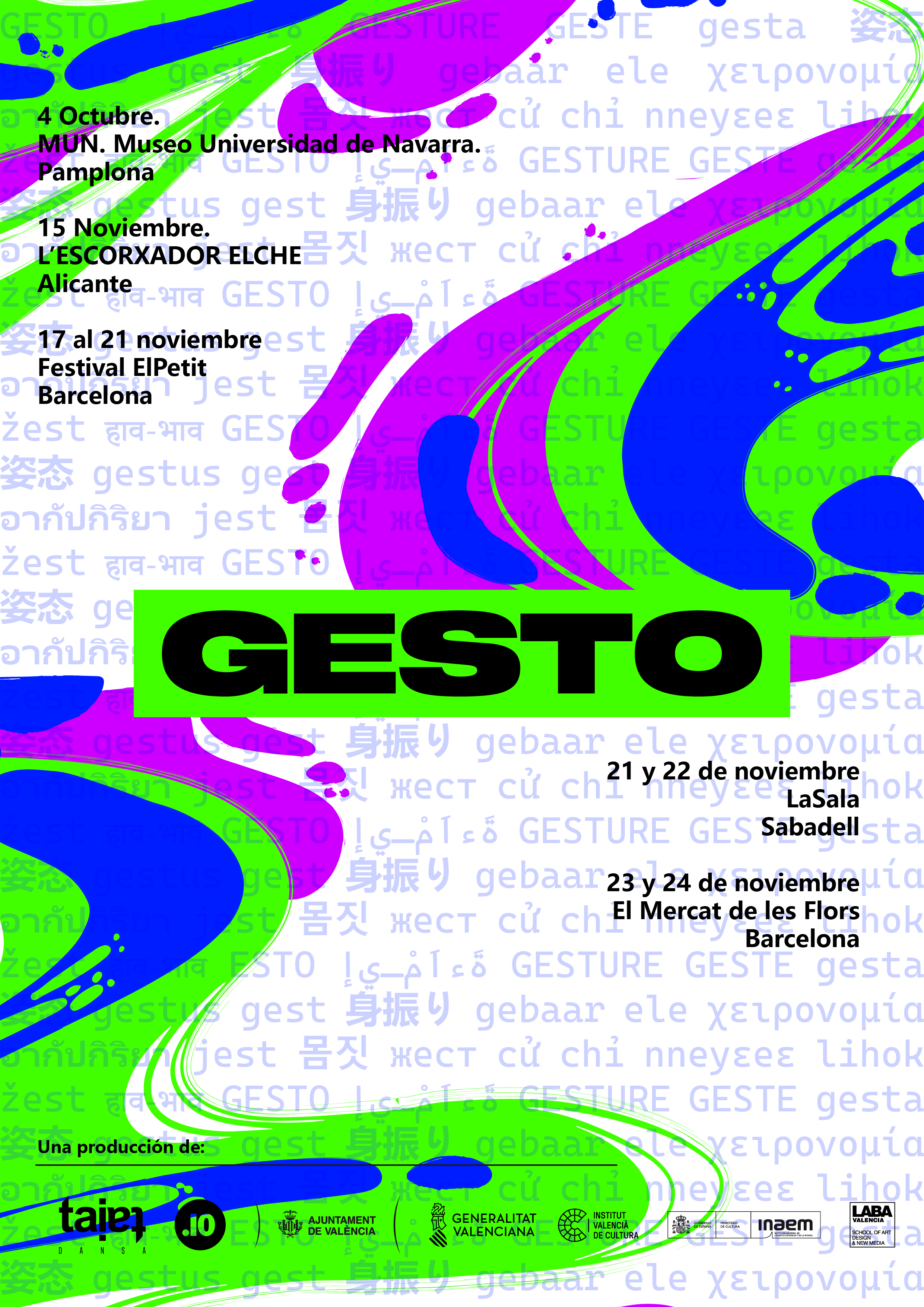 Gesto es una pieza que apuesta por una instalación audiovisual interactiva diseñada para sumergir a los bailarines —y también al público— en un entorno dinámico y rico en percepciones cambiantes, que combina movimiento, luz, sonido, música y arte visual. Está concebida tanto para museos como para espacios escénicos y no convencionales.